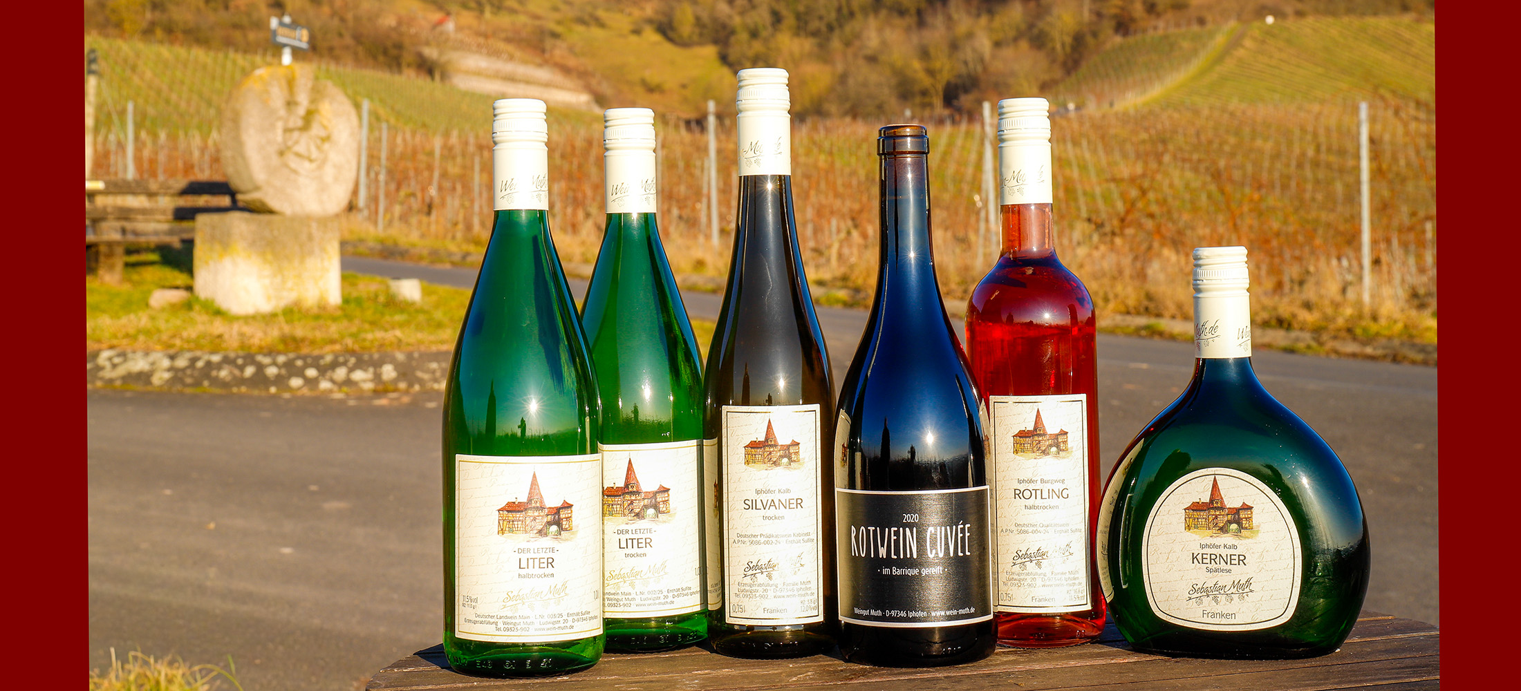 ... unsere Weine erleben. Wir bieten Fränkische Weine von trocken bis süß! Ob Müller-Thurgau, Silvaner, Bacchus, Weißwein-Cuvée, Kerner, Scheurebe, Traminer, Rotling oder Acolon. Oder starten Sie mit einem spritzigen Perlwein in den Abend... Zum Wohl!
